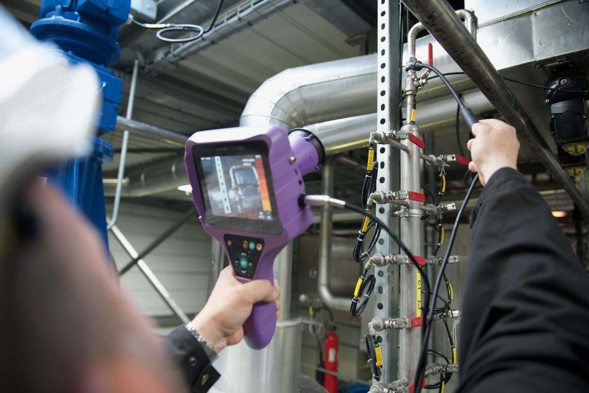 LEAKSHOOTER® V2 + 可用于檢測(cè)壓縮空氣網(wǎng)絡(luò)以及機(jī)器和系統(tǒng)的氣動(dòng)系統(tǒng)中的泄漏。設(shè)備中的傳感器檢測(cè)距離***遠(yuǎn) 20 m 的空氣泄漏,并在數(shù)字屏幕上實(shí)時(shí)顯示。在彩色屏幕上,泄漏源為黃色(弱信號(hào))或紅色(強(qiáng)信號(hào))實(shí)時(shí)可見(jiàn)。***多可以以數(shù)字方式存儲(chǔ) 1,000 張圖像并傳輸?shù)?PC。