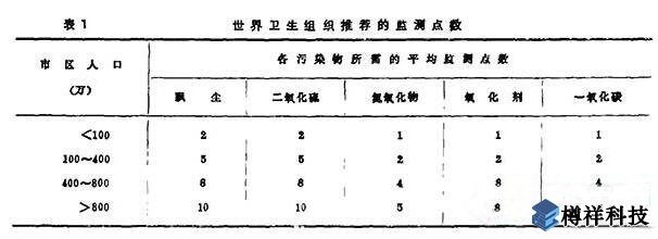 1976年世界衛(wèi)生組織推薦的監(jiān)測點數(shù)見表1